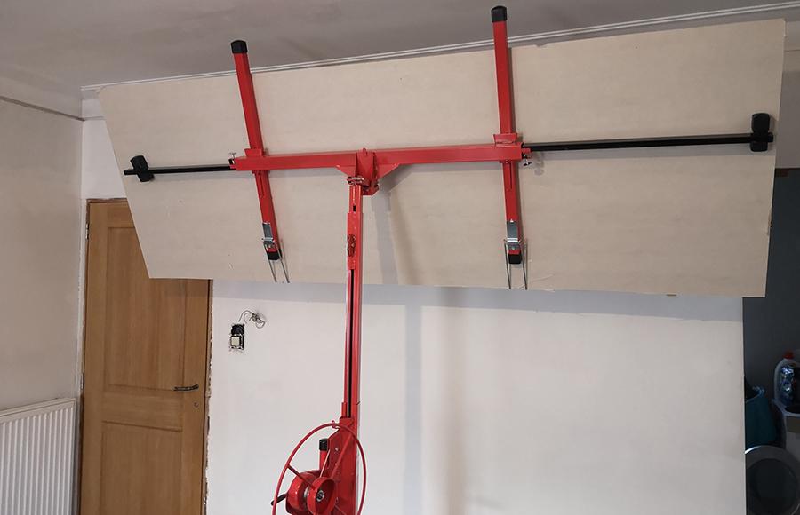 De gyproclift kan gebruikt worden in kleine ruimtes en neemt het zware werk deels van je over. Het helpt je trouwens om nauwkeuriger te werken.